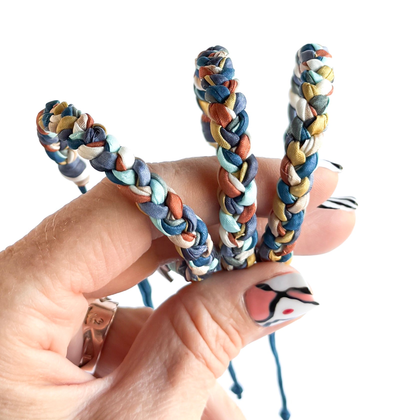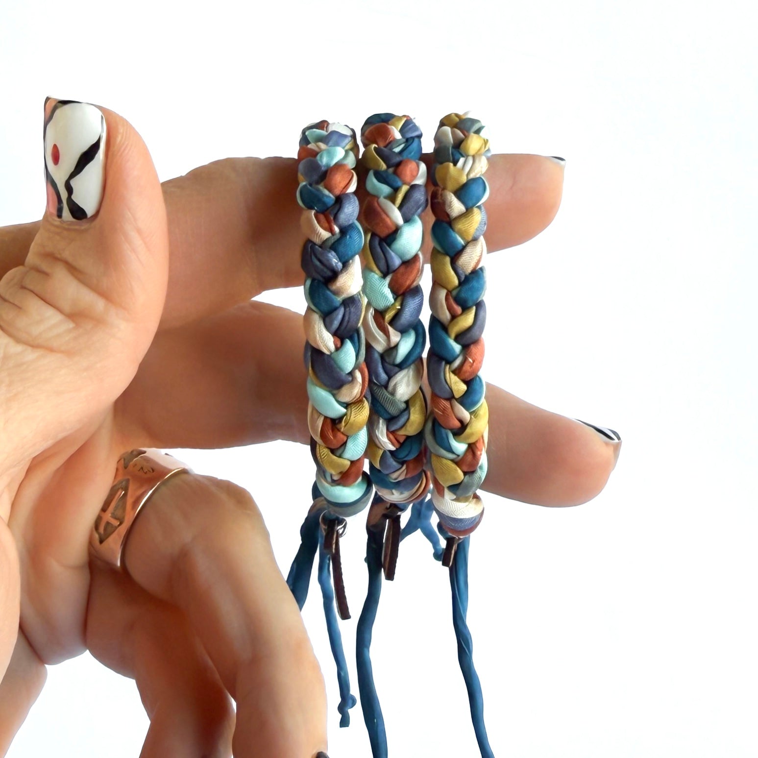 These pieces are made to order in our One Size Fit with wax cord closure fitting 5.5-8" wrists best based on Make with JL Live Episodes 247, 248, 249 on Instagram on 5/12,14,16/25.
