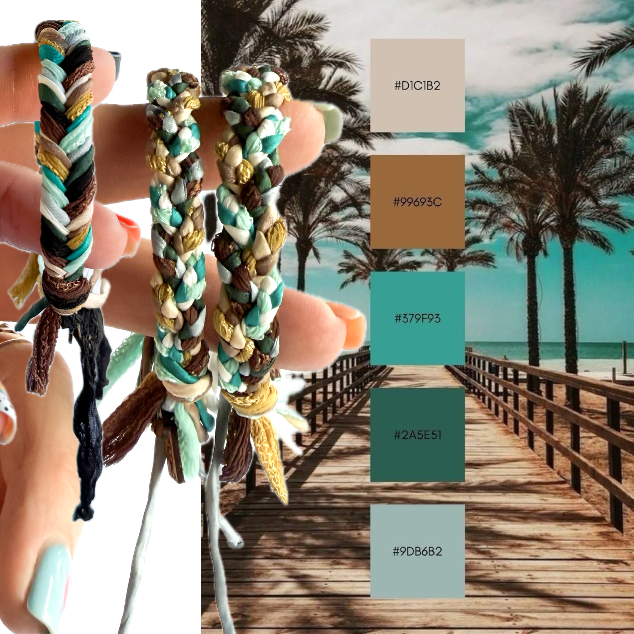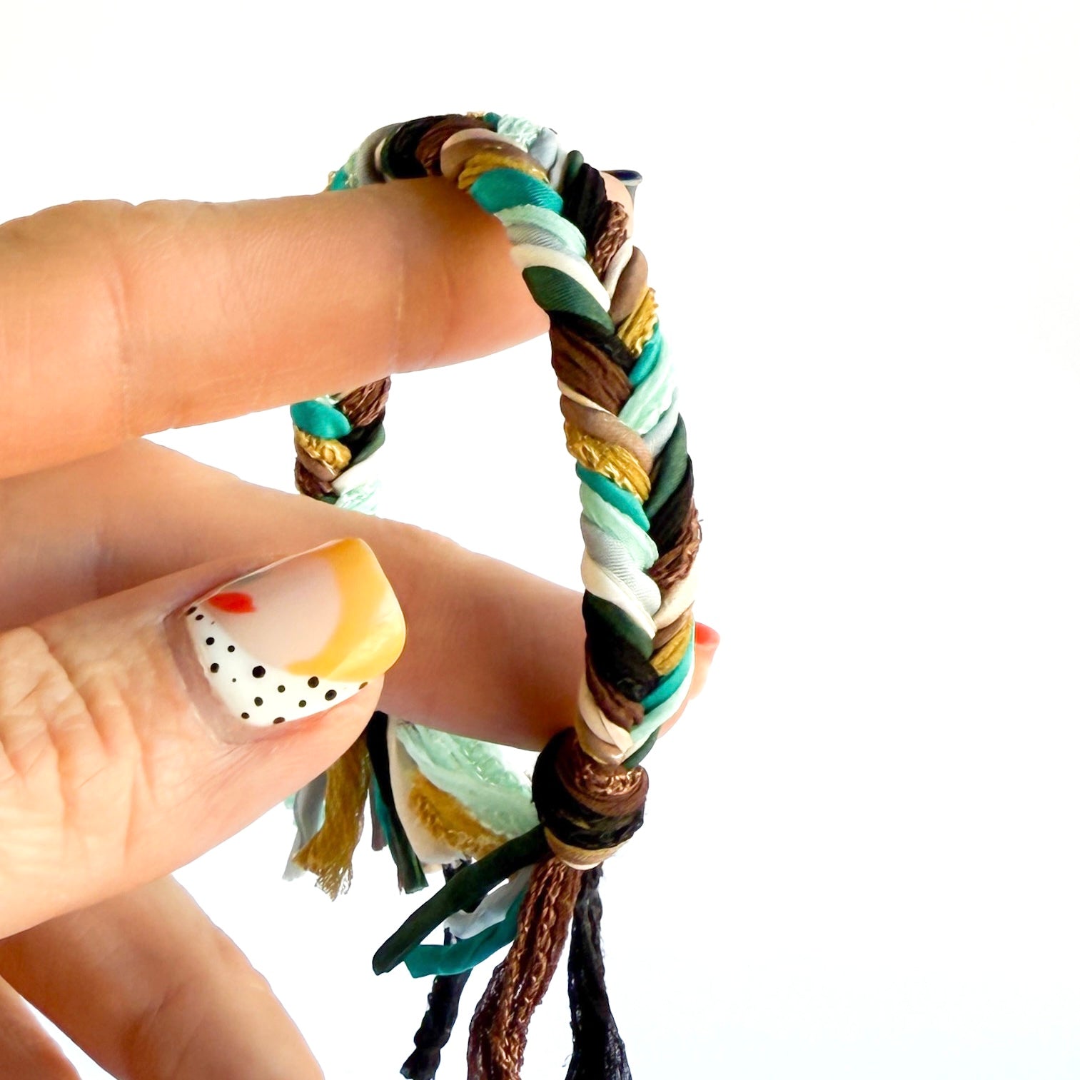 🌴 Fairy Abstract Confetti Braid (thicker)- *Minty, Hunter, Chocolate F.R. + Café, Taupe, Deer F.R. + Teal, White, Aqua F.R. w/teal wax