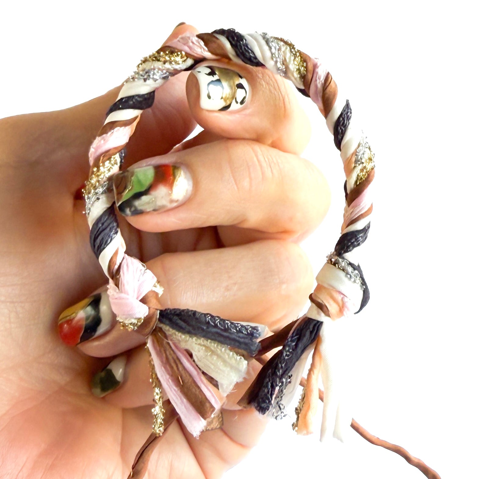 Our silk bracelets are made out of eco-friendly hand dyed and sewn silk and are handcrafted in the USA, using the highest quality materials. Please appreciate small imperfections that may exist as they are the nature of handmade goods! Your Pretty by JL accessory is a trendsetting one of a kind!