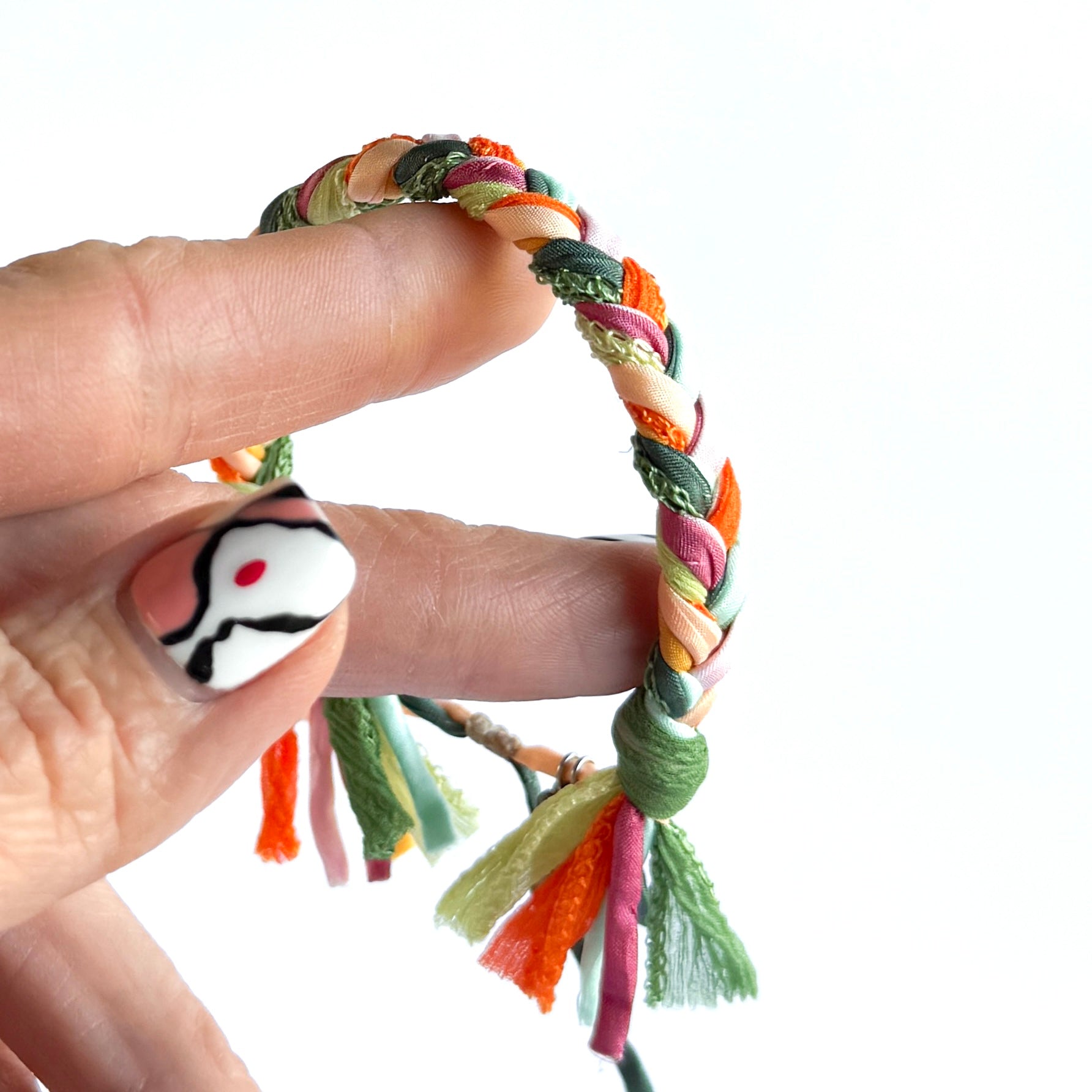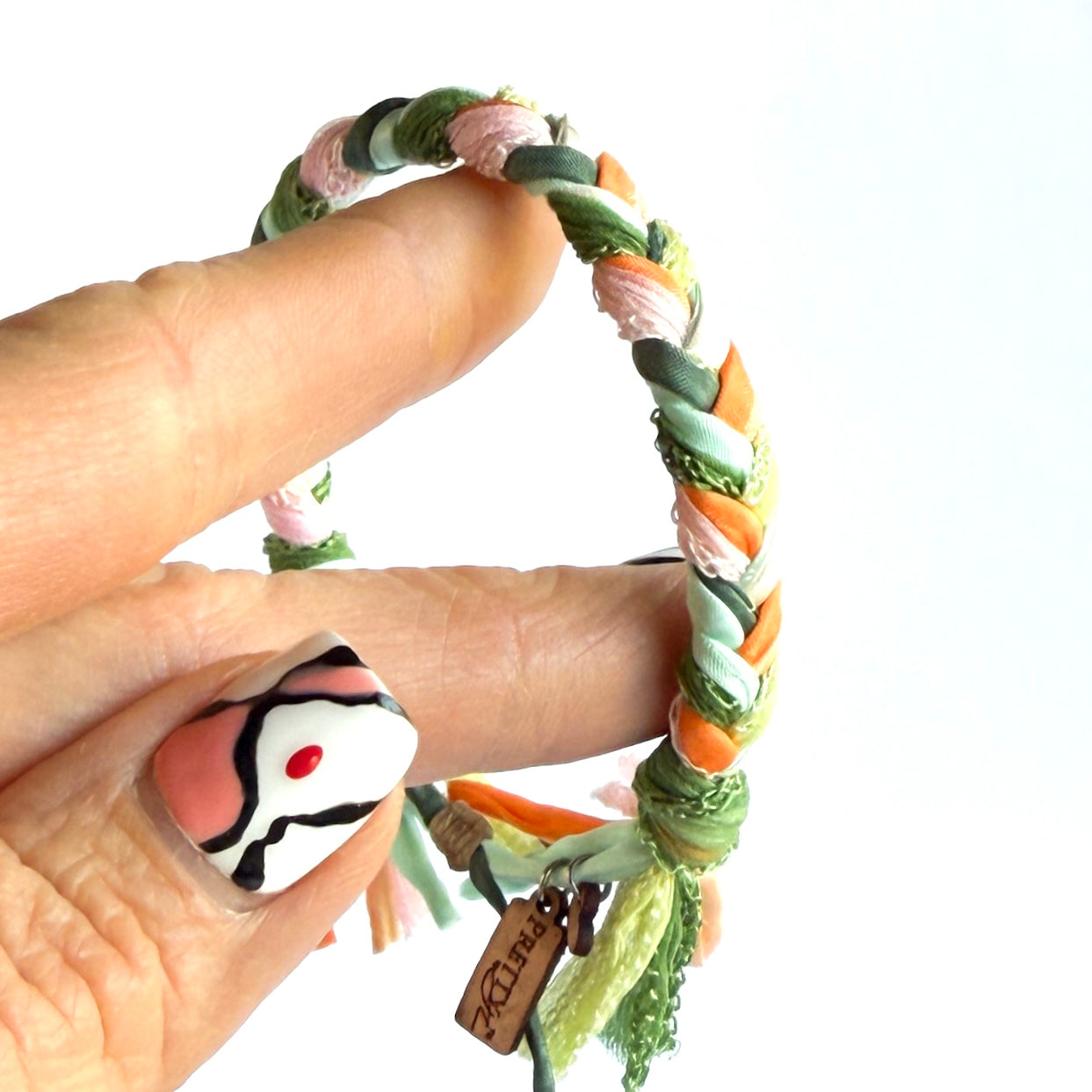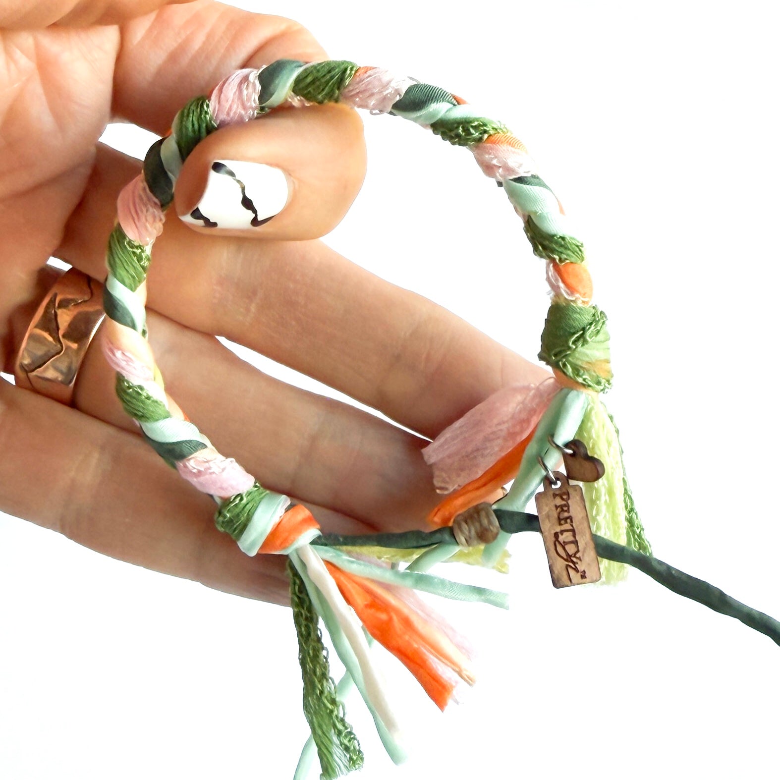 Our silk bracelets are made out of eco-friendly hand dyed and sewn silk and are handcrafted in the USA, using the highest quality materials. Please appreciate small imperfections that may exist as they are the nature of handmade goods! Your Pretty by JL accessory is a trendsetting one of a kind!