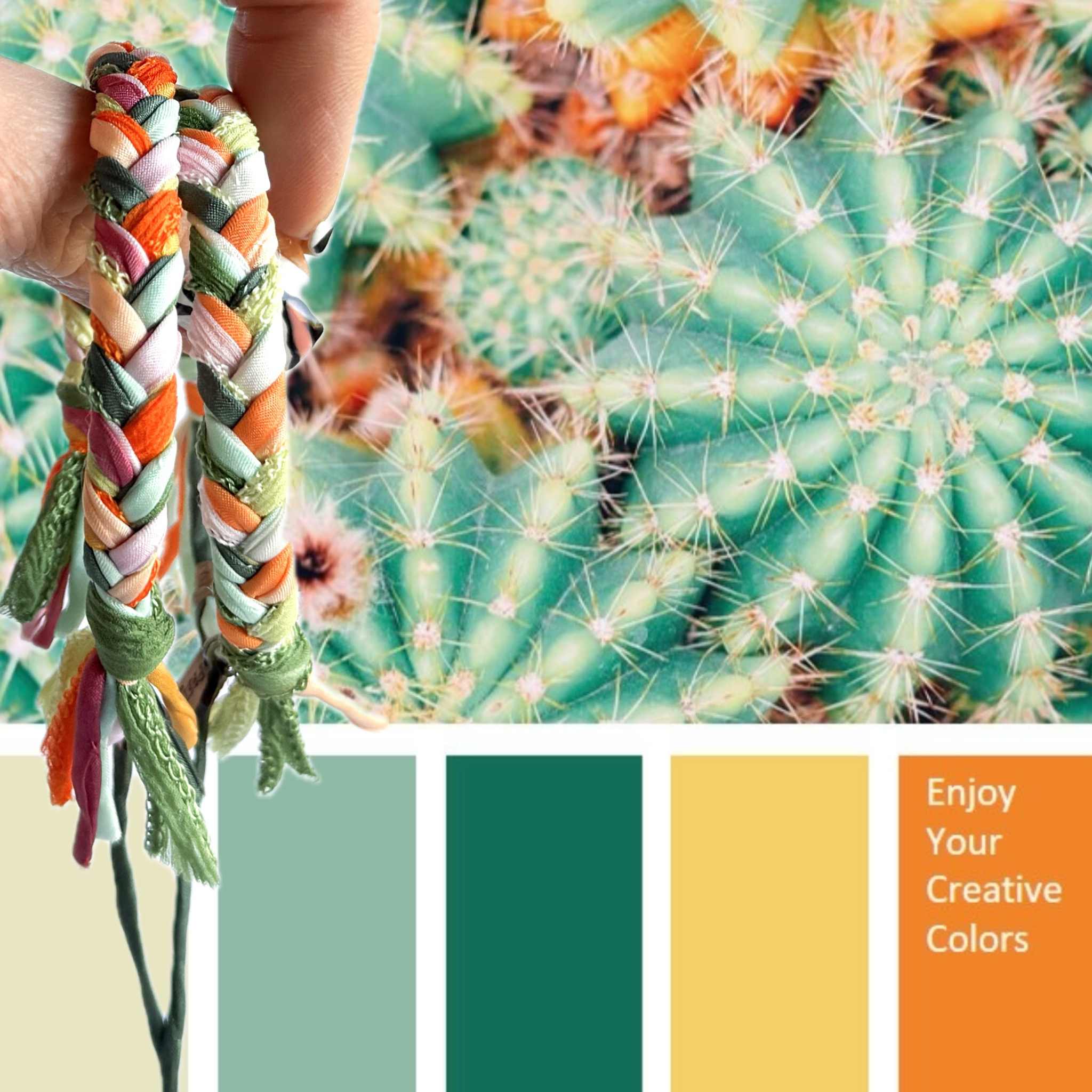 🌵 Fairy Abstract Plump No. 1- *Dark Green, Aqua, Pine F.R. + Pale Pink, Old Rose, Spring F.R. + Burnt, *Cantaloupe, Tangerine F.R. w/natural wax