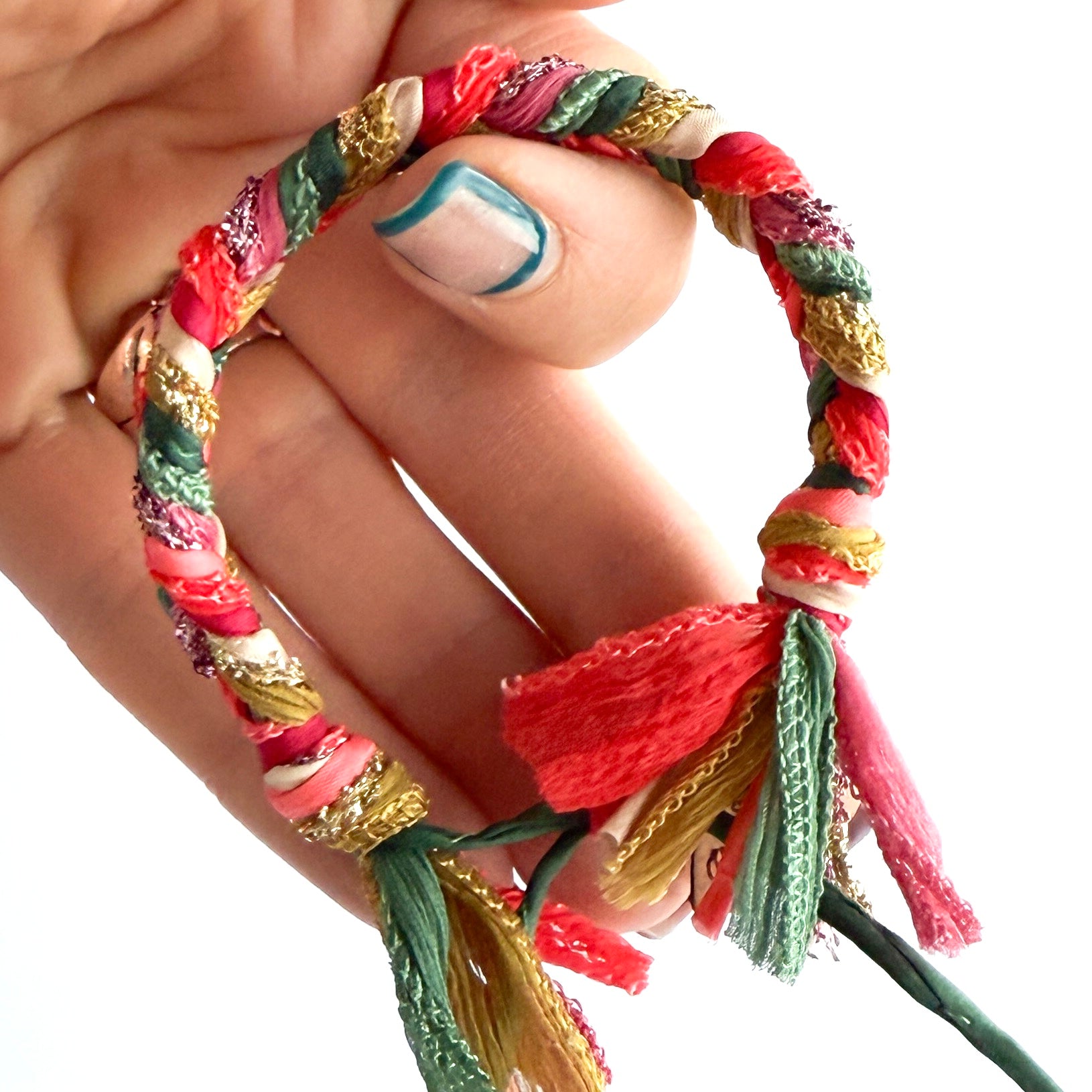 Our silk bracelets are made out of eco-friendly hand dyed and sewn silk and are handcrafted in the USA, using the highest quality materials. Please appreciate small imperfections that may exist as they are the nature of handmade goods! Your Pretty by JL accessory is a trendsetting one of a kind!