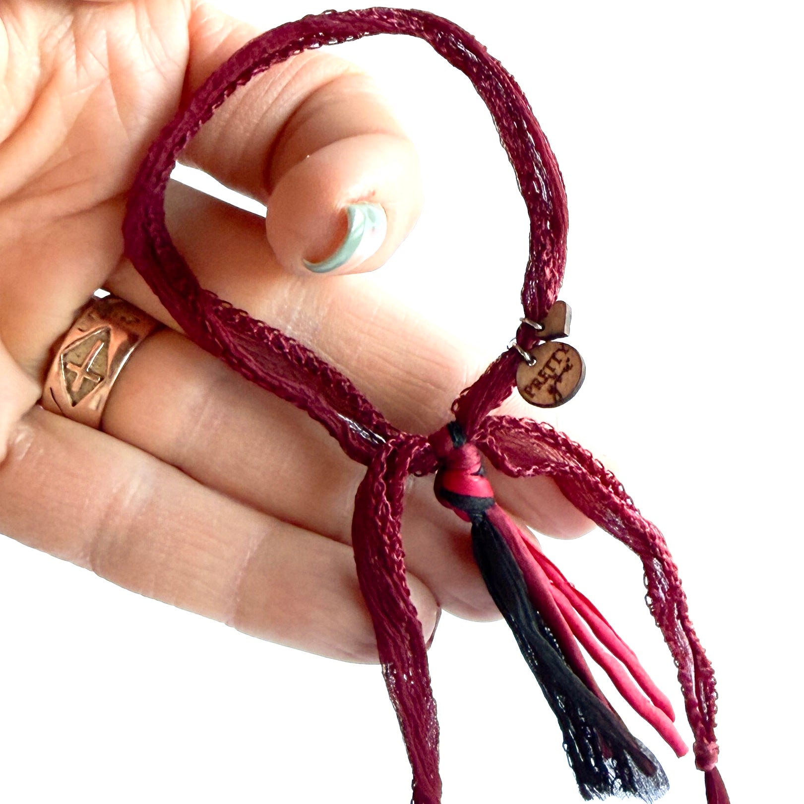 Our silk bracelets are made out of eco-friendly hand dyed and sewn silk and are handcrafted in the USA, using the highest quality materials. Please appreciate small imperfections that may exist as they are the nature of handmade goods! Your Pretty by JL accessory is a trendsetting one of a kind!