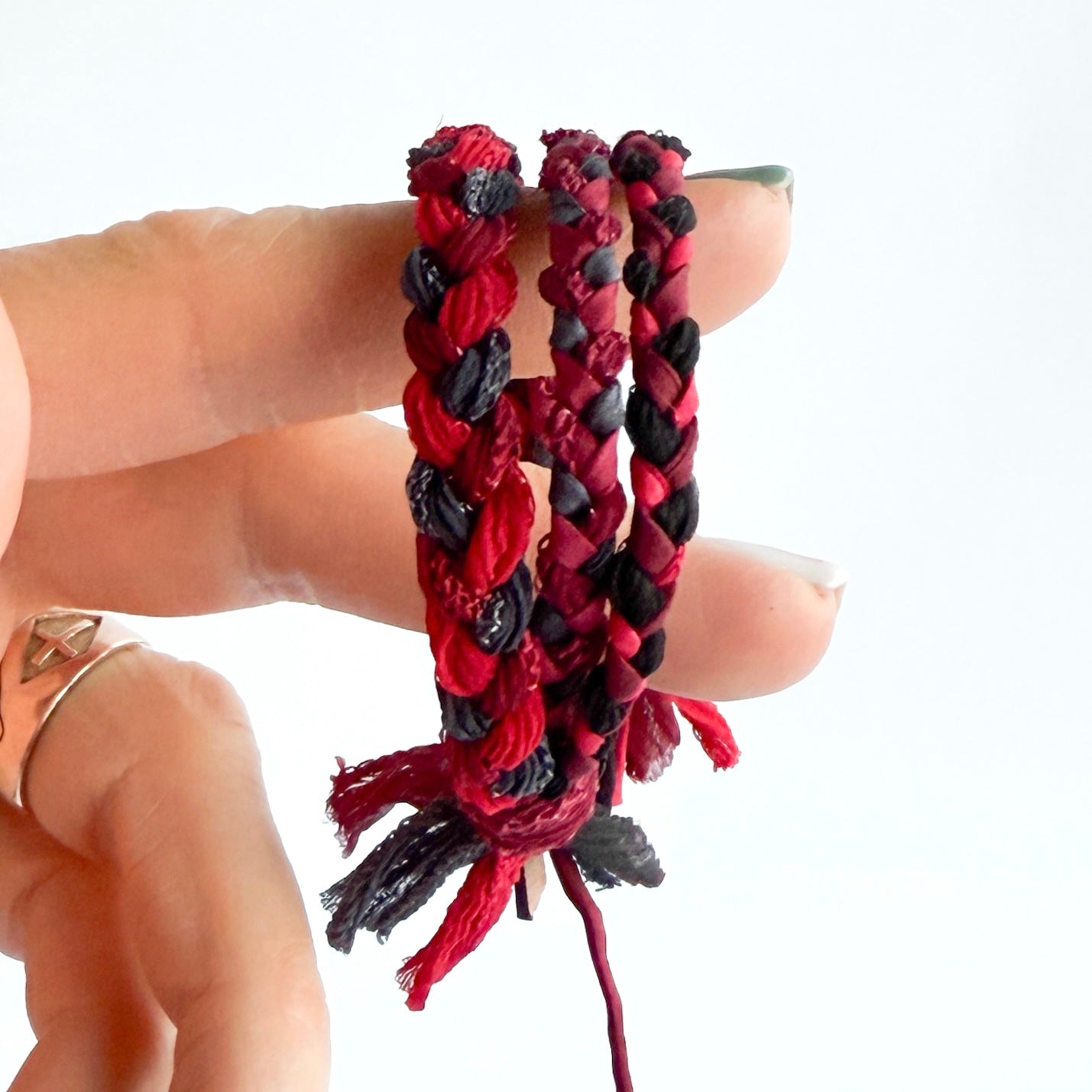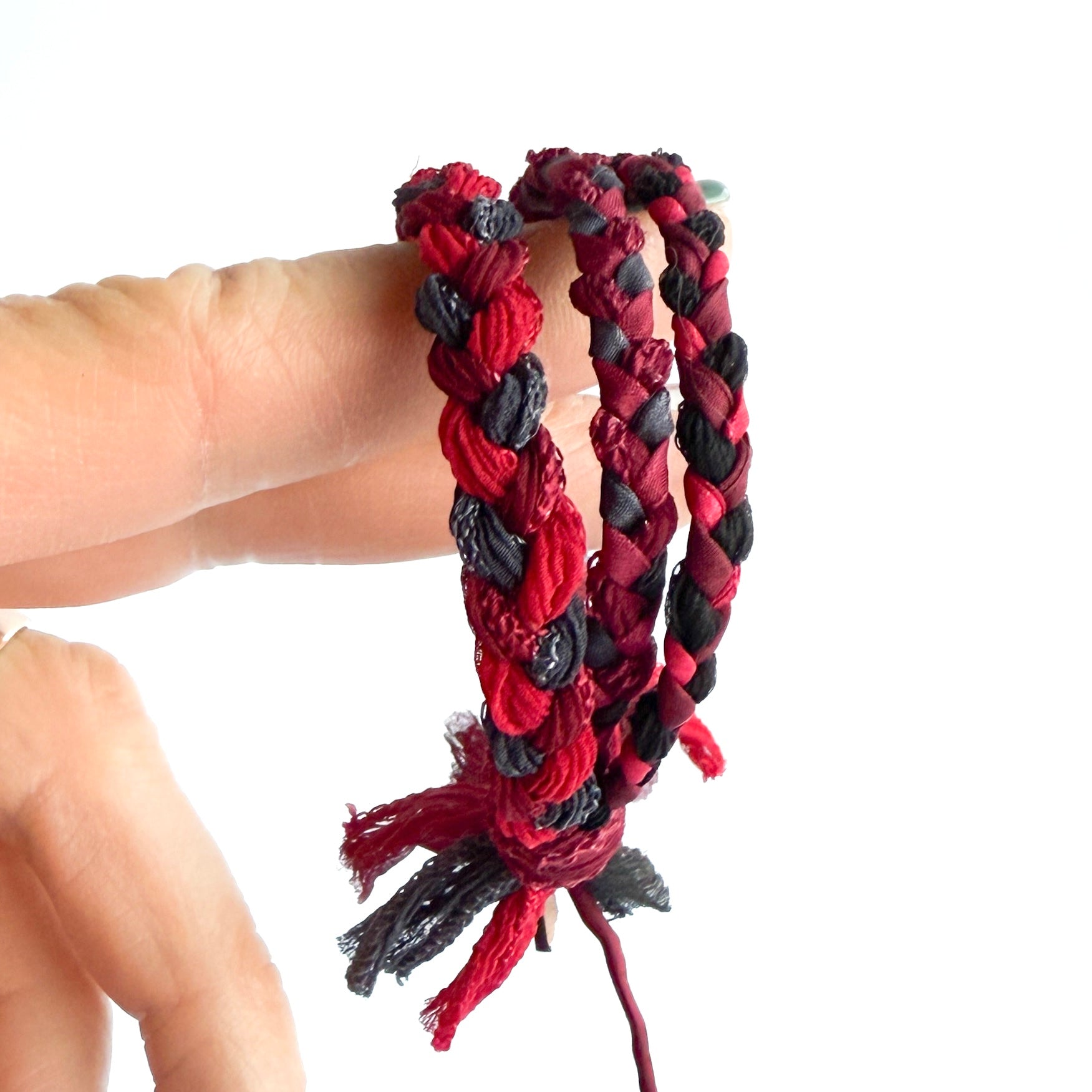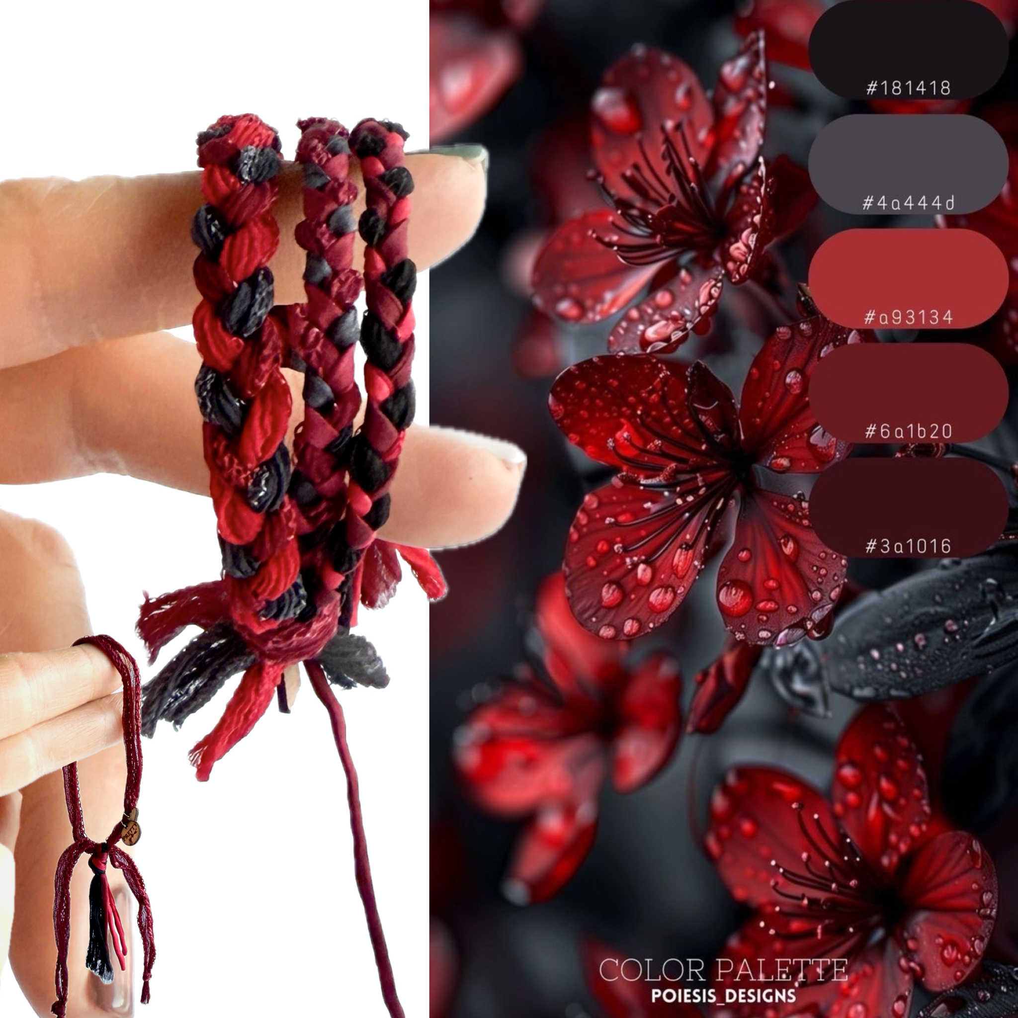 🍷🥀 Fairy Abstract Triple Braid- Slate F.R., Holiday Red F.R., Bordeaux F.R. + Slate, Bordeaux, Wine F.R. + *Wine, Holiday Red, Black F.R. w/black wax
