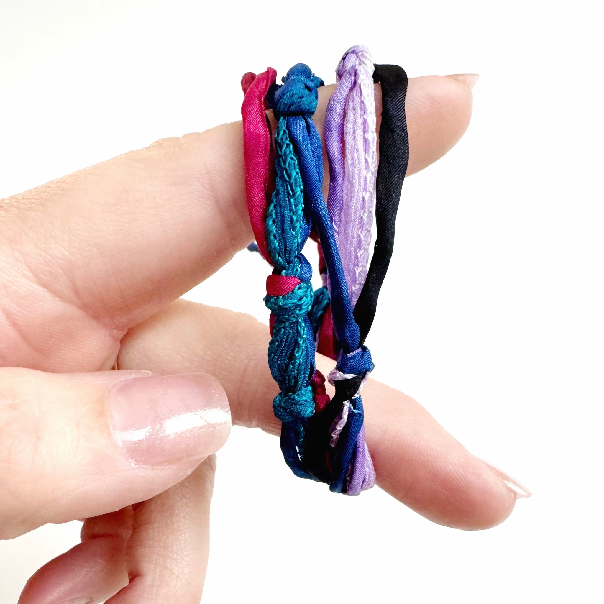 Our silk bracelets are made out of eco-friendly hand dyed and sewn silk and are handcrafted in the USA, using the highest quality materials. Please appreciate small imperfections that may exist as they are the nature of handmade goods! Your Pretty by JL accessory is a trendsetting one of a kind!
