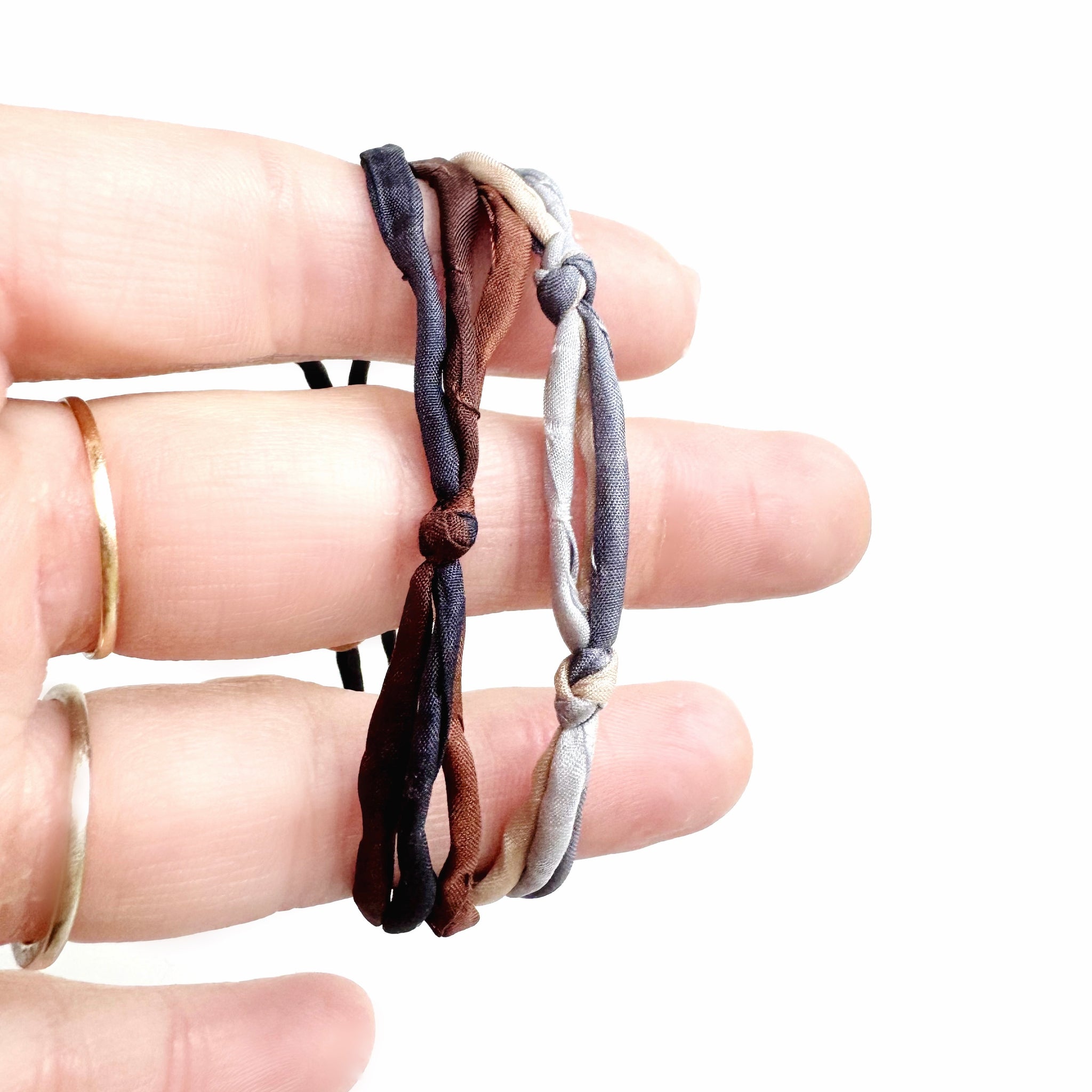 Our silk bracelets are made out of eco-friendly hand dyed and sewn silk and are handcrafted in the USA, using the highest quality materials. Please appreciate small imperfections that may exist as they are the nature of handmade goods! Your Pretty by JL accessory is a trendsetting one of a kind!