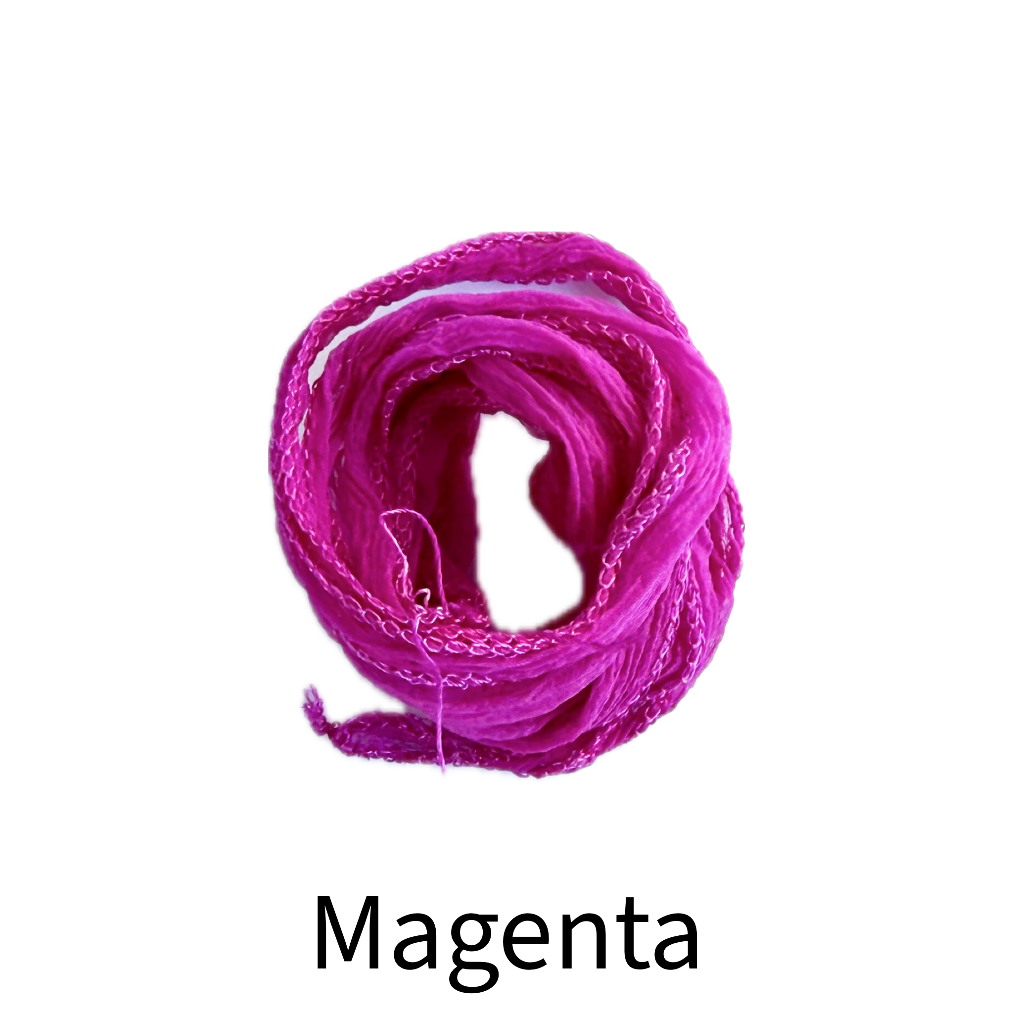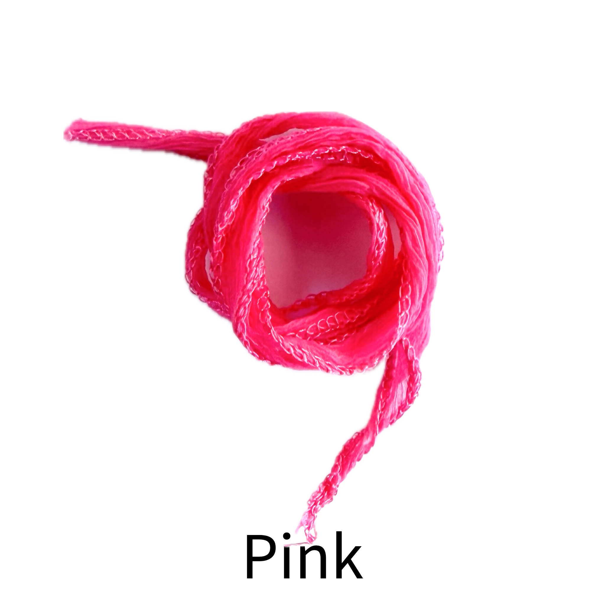 Our most recent obsession... Fairy Ribbon. Hand sewn and dyed, this sheer silk ribbon is irresistible for our Pretty by JL silk bracelet loving hearts. The array of colors provides and infinite number of combination possibilities. Please understand that it is a natural fiber and expect inconsistencies.