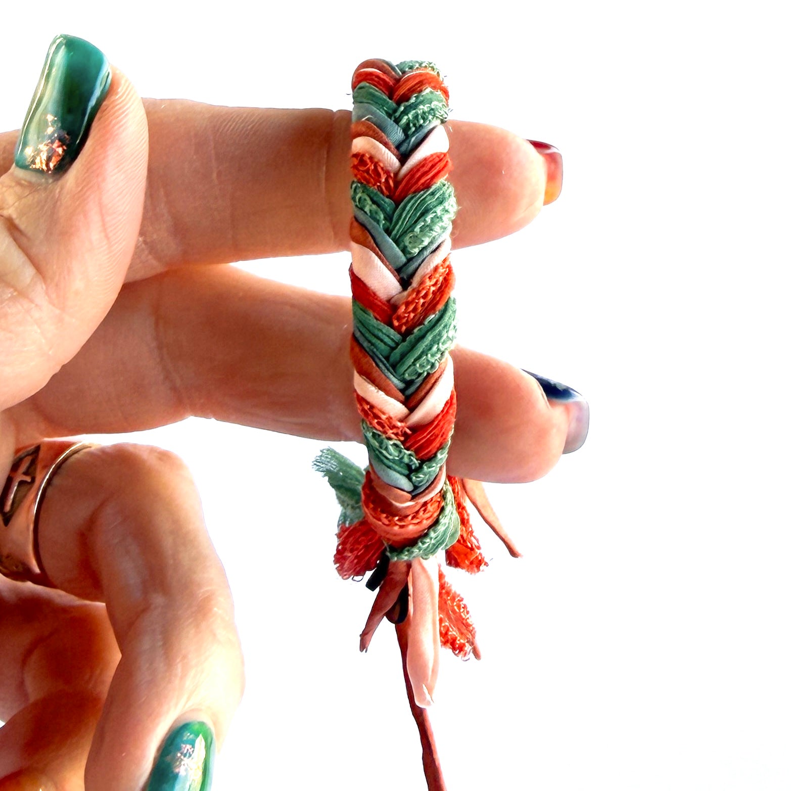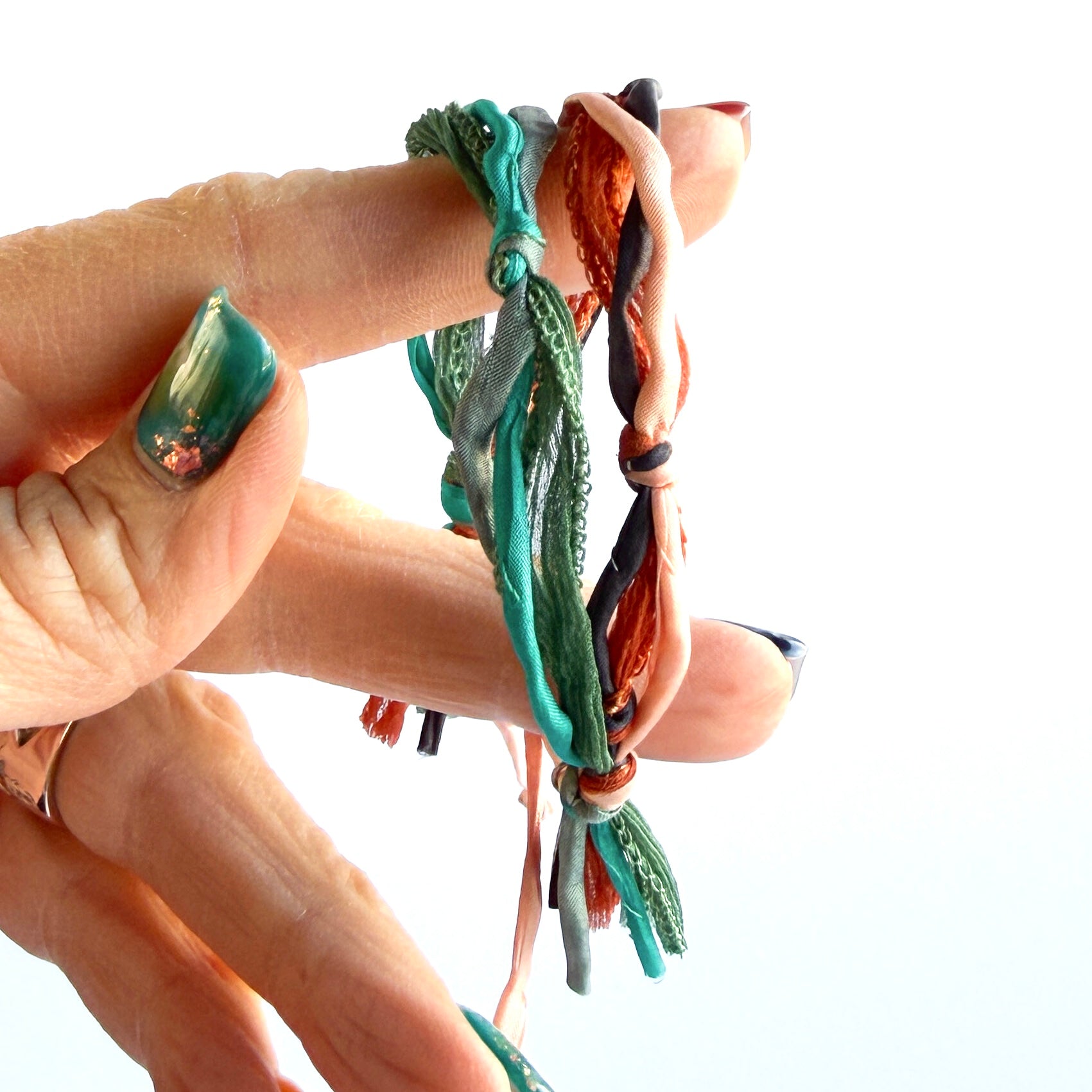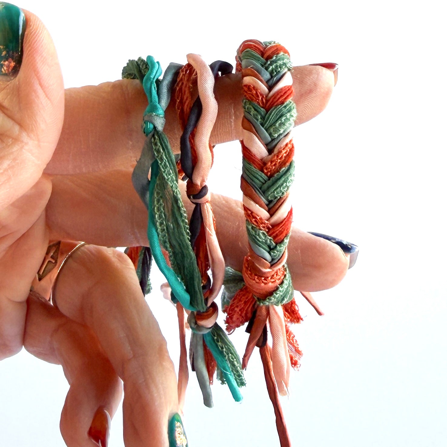 🌵 Coordinates with Pretty by You Together 086 - 6 Strand Fairy Double Forget Me Knot: Boho/Woven- Green Clay, Teal, Eucalyptus F.R. + *Blush, Slate, Rust F.R. w/teal wax