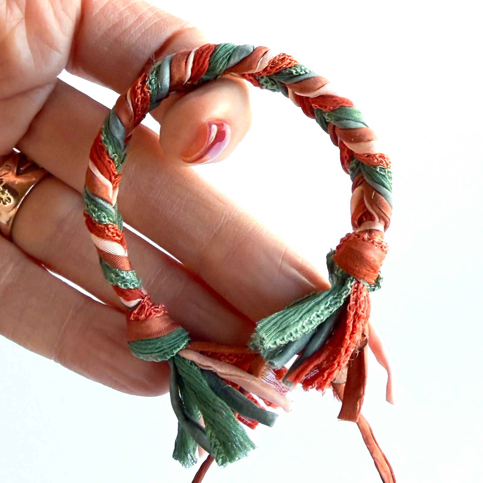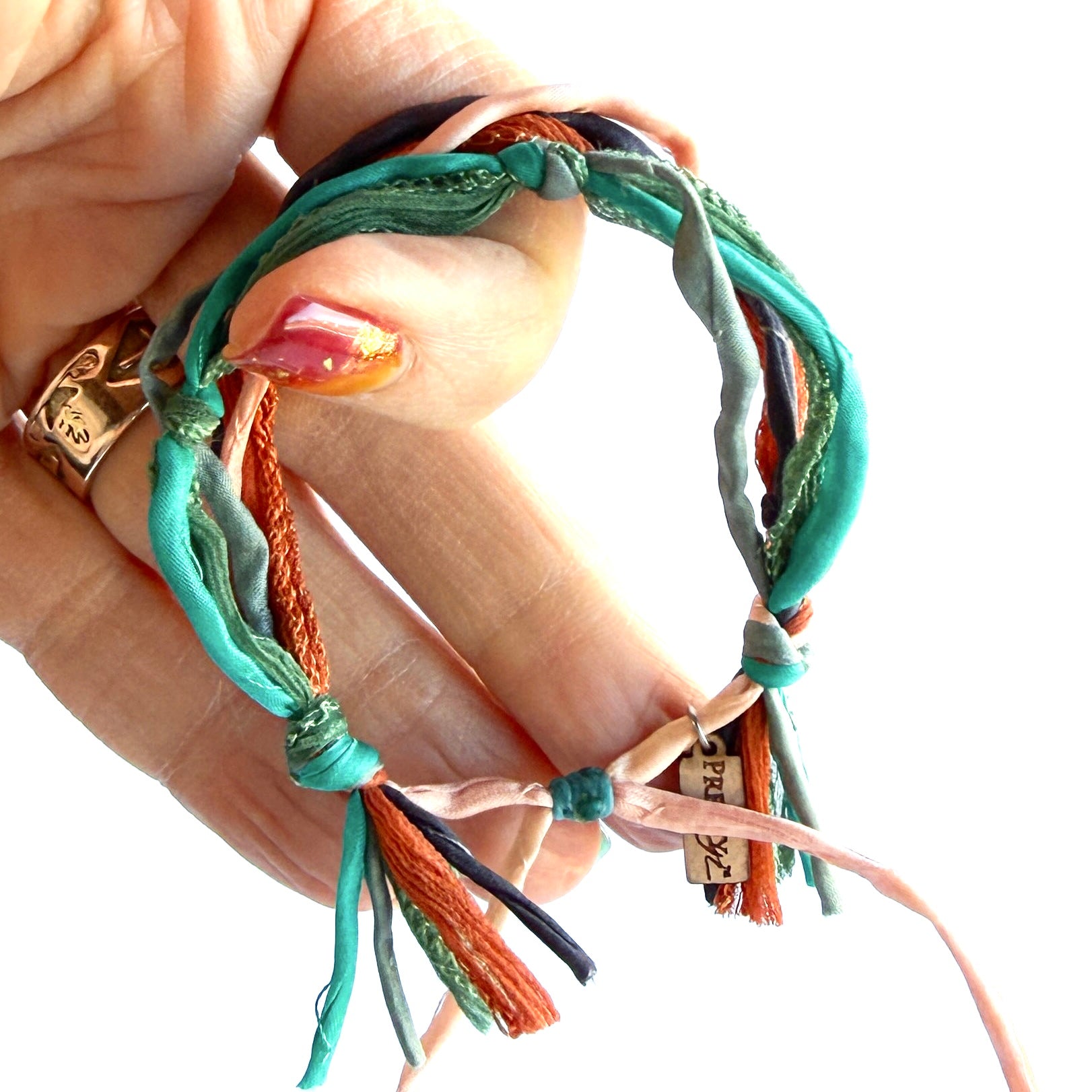 Our silk bracelets are made out of eco-friendly hand dyed and sewn silk and are handcrafted in the USA, using the highest quality materials. Please appreciate small imperfections that may exist as they are the nature of handmade goods! Your Pretty by JL accessory is a trendsetting one of a kind!